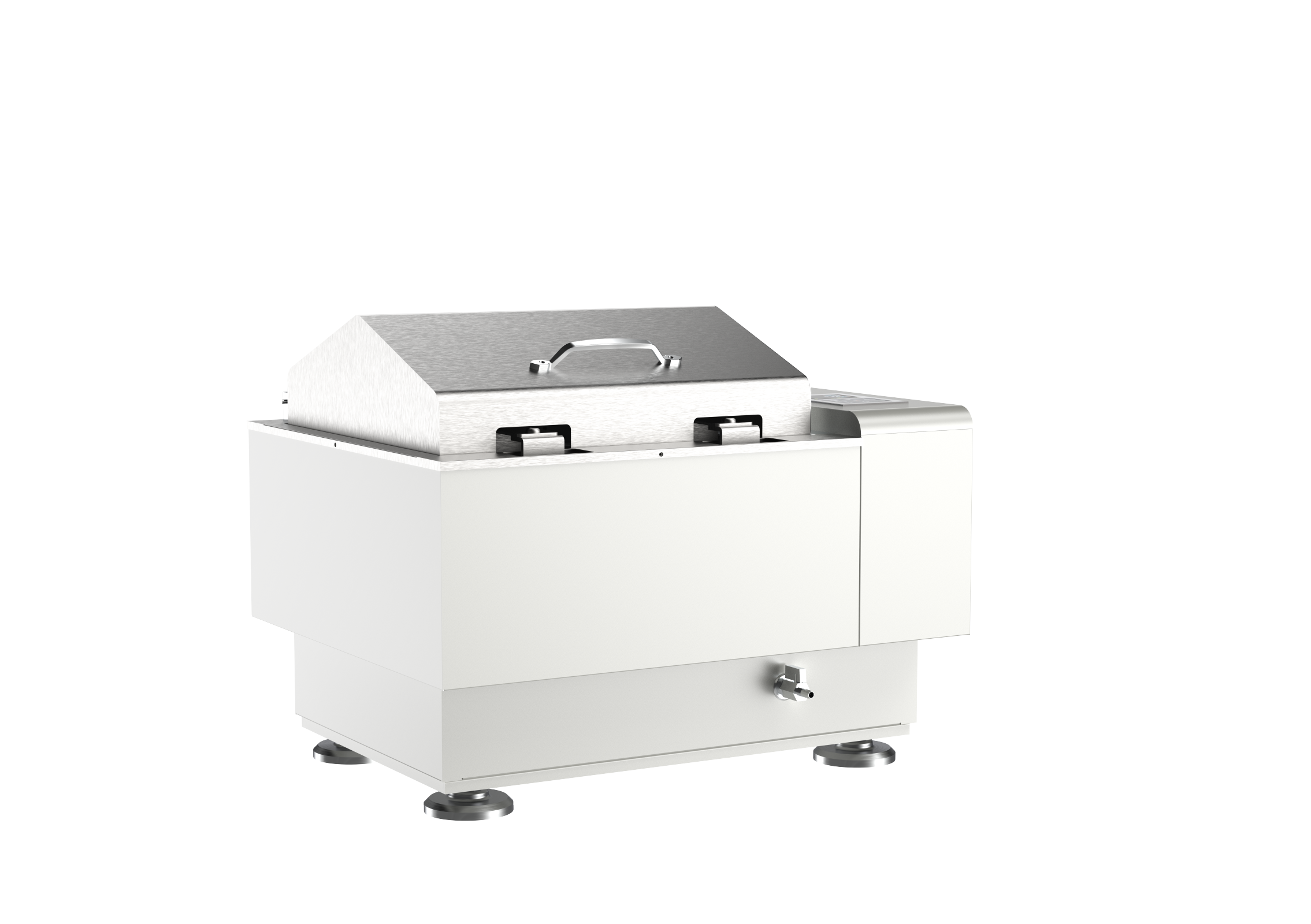 3、不锈钢内胆、摇板、弹簧、烧瓶夹;前面设有排水阀